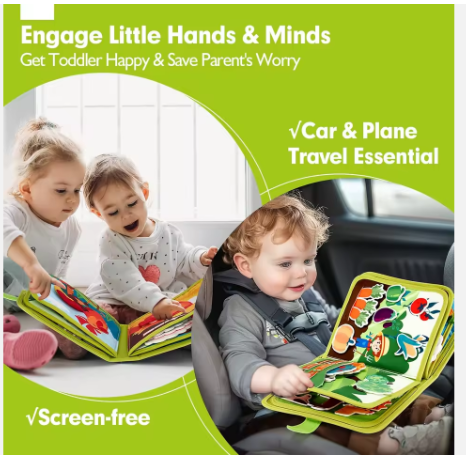 Compact and lightweight, this busy book is ideal for use at home, in restaurants, during car rides, or on flights. It keeps toddlers quiet, entertained, and happily engaged, making family outings stress-free.